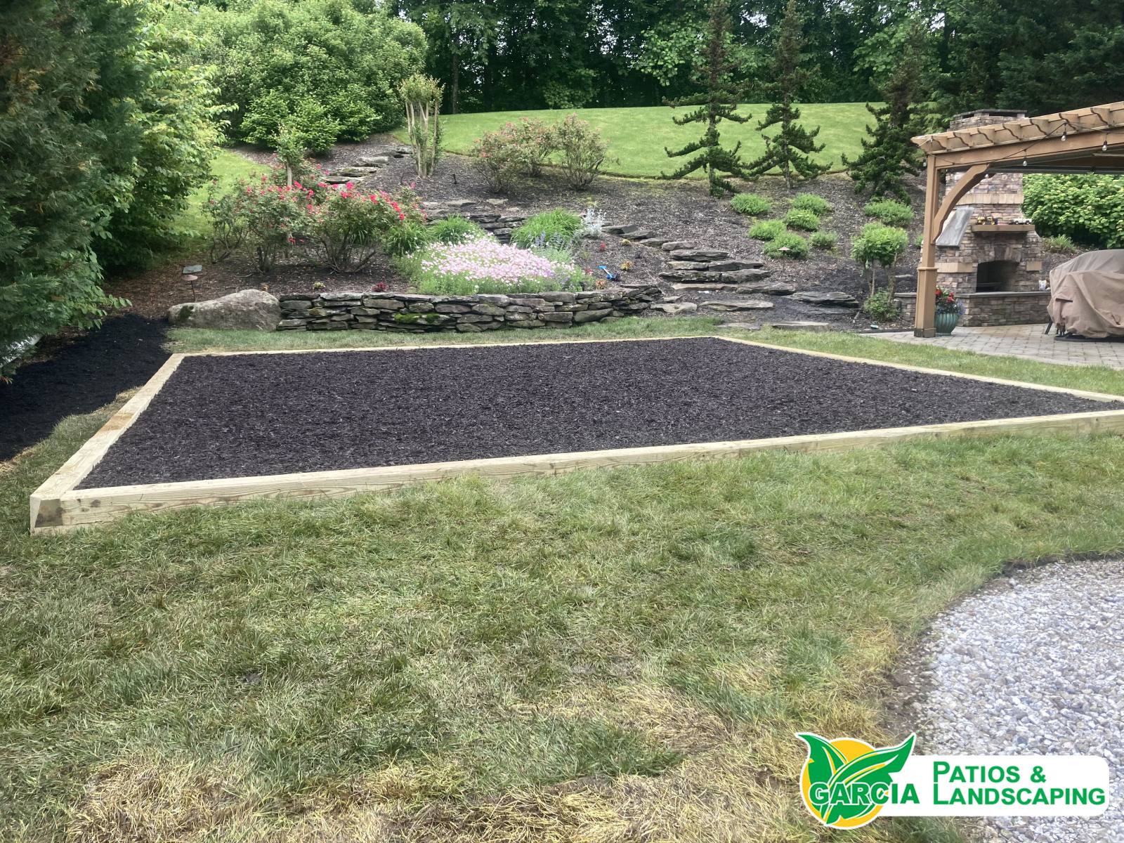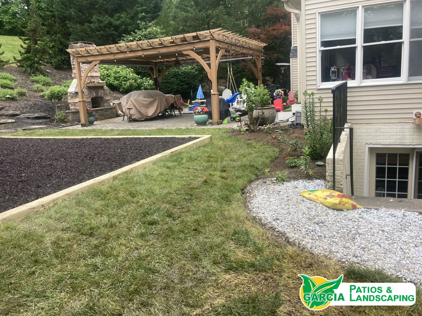 Our crew completed work on this playground area for a customer’s backyard in Edgewater, MD. Our highly skilled crews will deliver top quality results for your outdoor living space! Contact Garcia Patios & Landscaping at 410-798-4615.