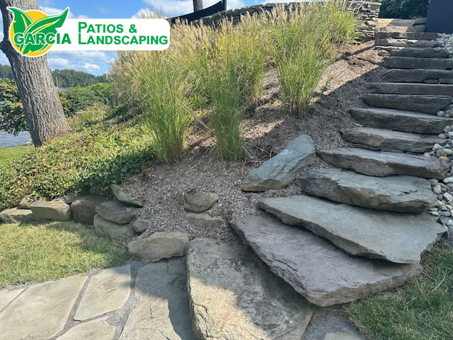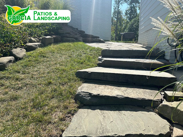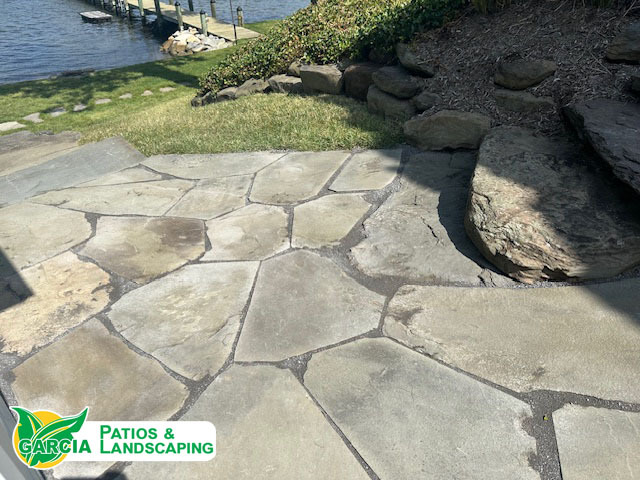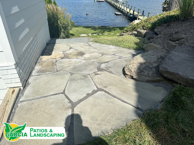 Here are the finished results for a natural stonework project that our crew completed for a customer’s outdoor space in Edgewater, MD. From walkways to fire pits and full patios, we’ve got your hardscaping needs covered! Let us start on your dream hardscape soon; give Garcia Patios & Landscaping a call at 410-798-4615.