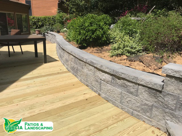 Take a look at the retaining wall that our crew completed for a residential customer in Arnold, MD! We are ready to design and install your hardscaping, patio pavers, retaining walls, walkways, and driveways! Contact Garcia Patios & Landscaping at 410-798-4615.